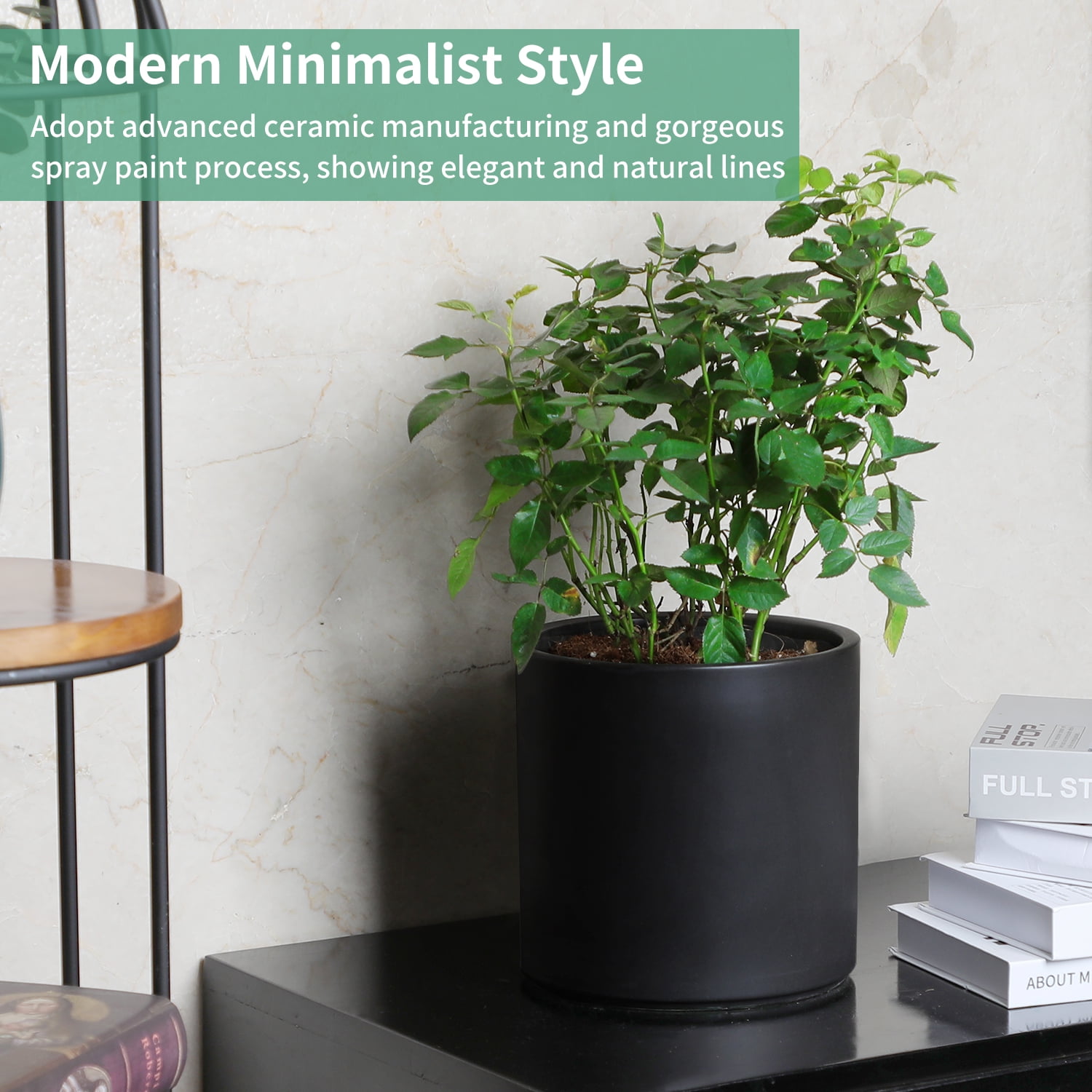 Mozing Ceramic Plant Pots Indoor 10 X 10 Inch Modern Flower Pot With Drainage Hole Black Walmart Com